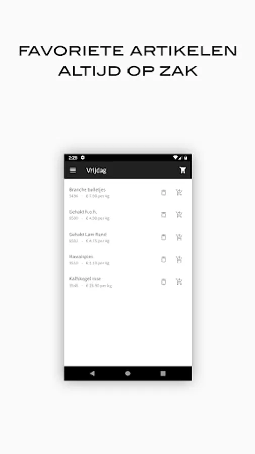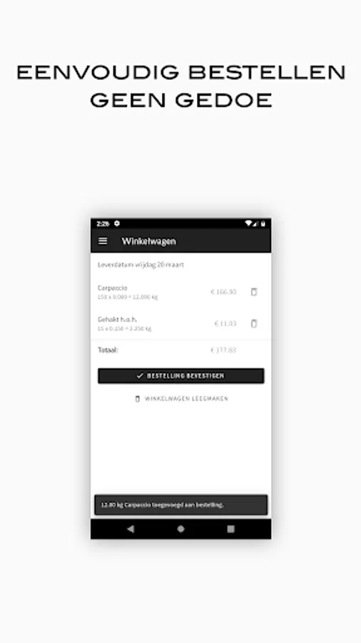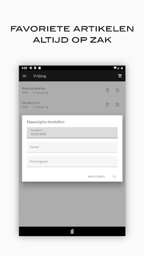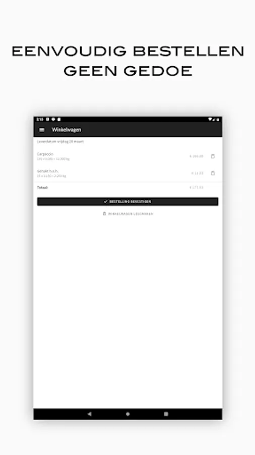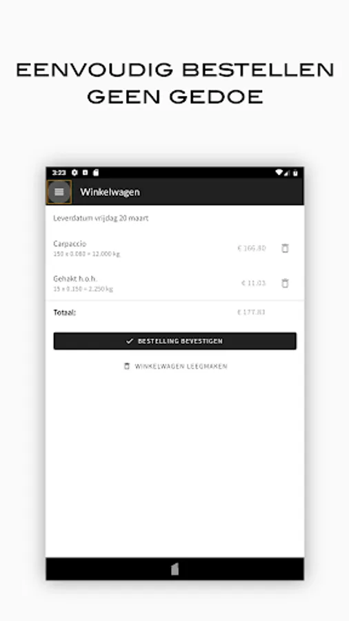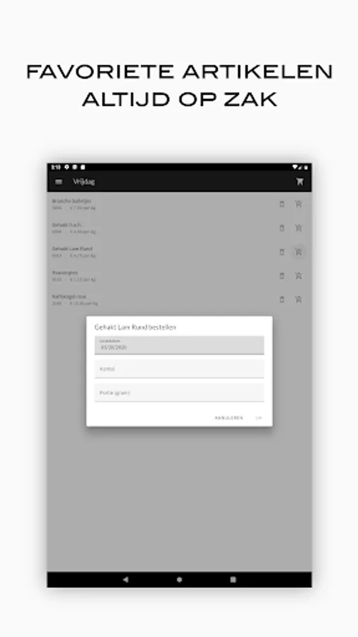 Order your meat easily and quickly from the specialist of quality cut meat for the catering industry in Amersfoort and surroundings. Create order lists with your favorite items, browse the entire range, view your order and invoice history on your smartphone or tablet.