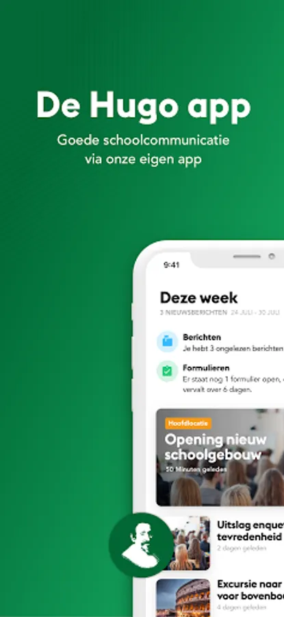 Are you a parent, student or employee of OSG Hugo de Groot? Download the Hugo app now and log in with the data you have received by email. Did you not receive an invitation, but always the latest news from OSG Hugo de Groot in your pocket? That is also possible without a login!