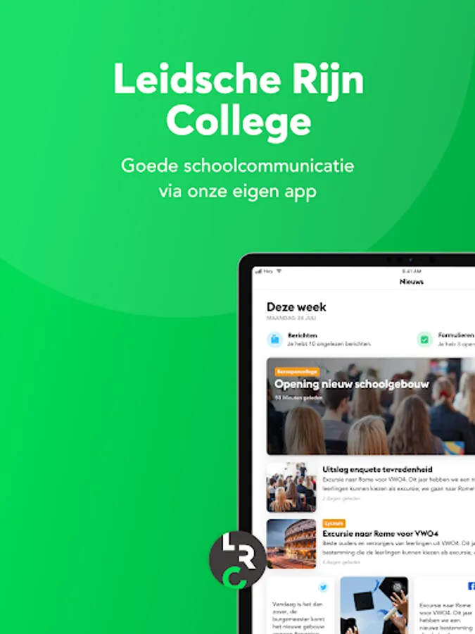 Are you a parent, student or employee of the Leidsche Rijn College? Download the Leidsche Rijn College app now and log in with the data you have received by email. Didn't receive an invitation, but always got the latest news from Leidsche Rijn College in your pocket? That is also possible without a login!