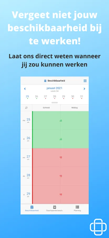 Via our website and our app you can immediately view the offer of work and respond to it. In addition, you will receive updates about interesting vacancies by e-mail, text message or push messages. After responding to a vacancy, you will receive a message as soon as possible whether you will be deployed.