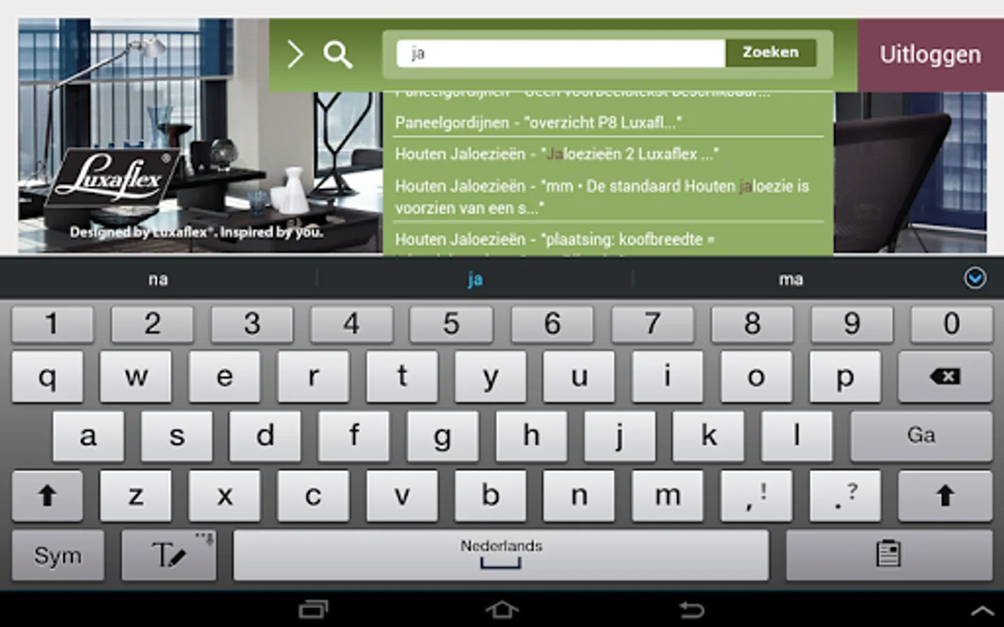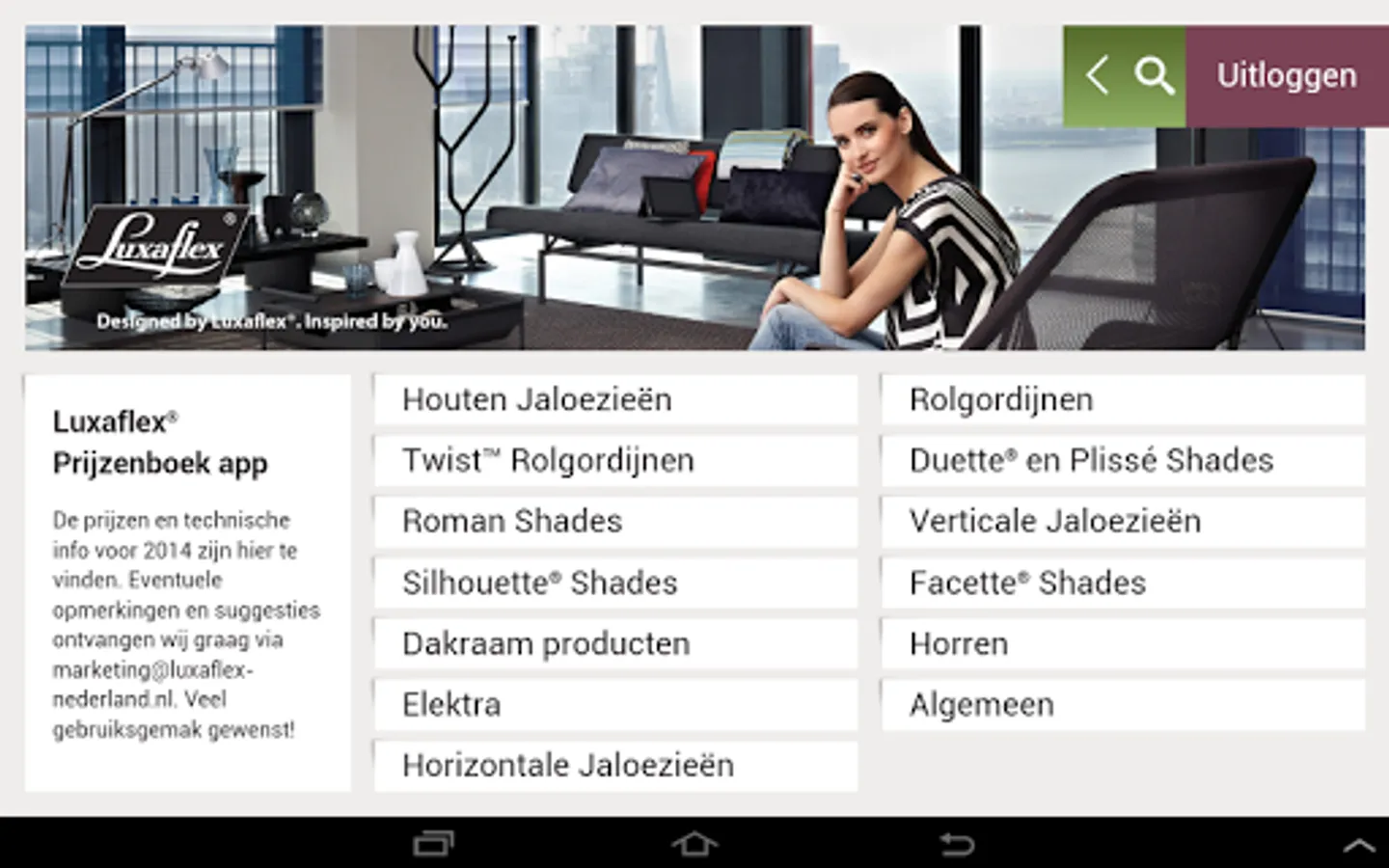 Luxaflex Book Awards App gives dealers on their tablet directly an overview of the catalog of Luxaflex Netherlands.