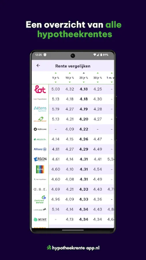 - Get an overview of all mortgage interest rates per lender