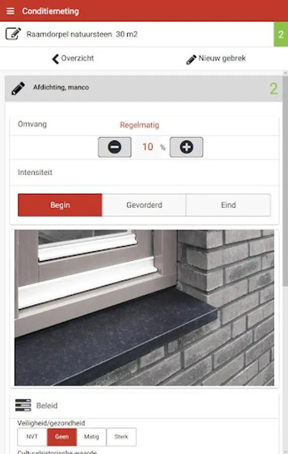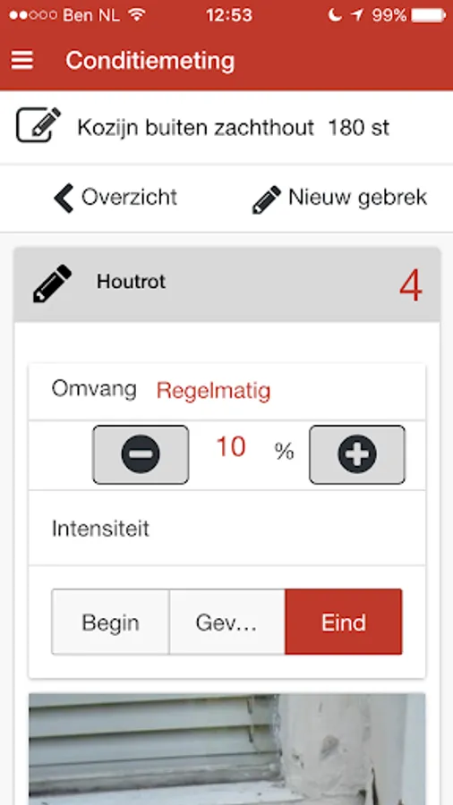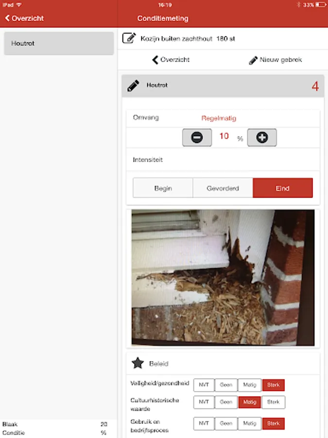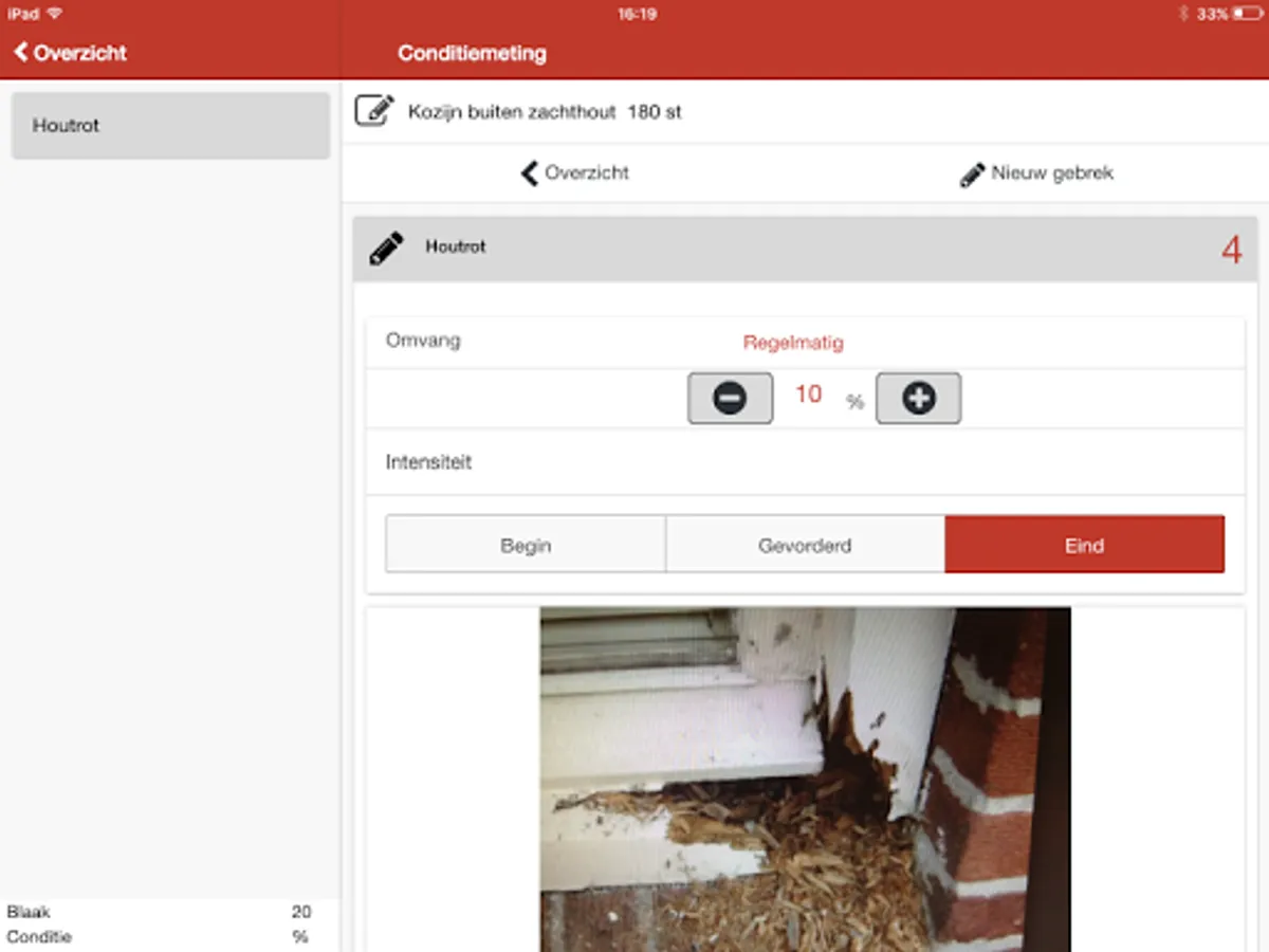 Mobile solution for inspecting your property based on the NEN 2767 (measurement condition). Fully integrated use of IBIS-MAIN, but also as a standalone tool. Combined with IBIS-MAIN possible to generate a long-term maintenance of the building or object.