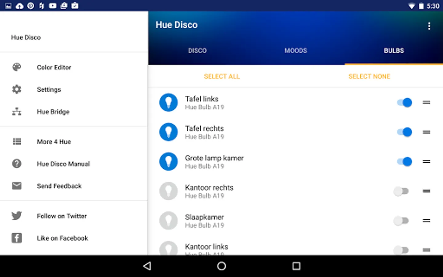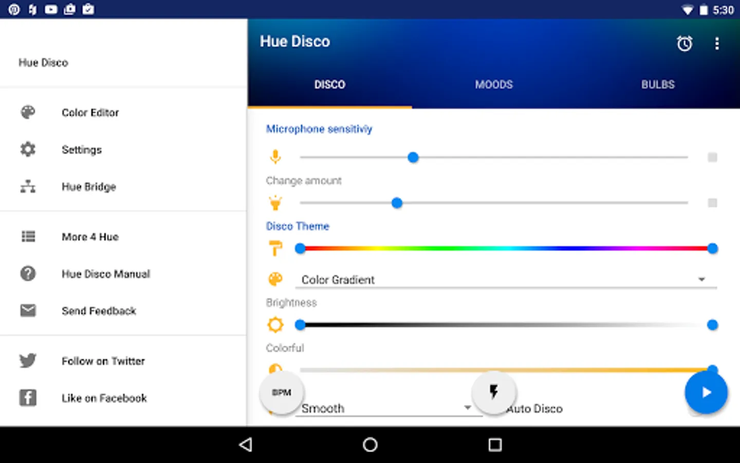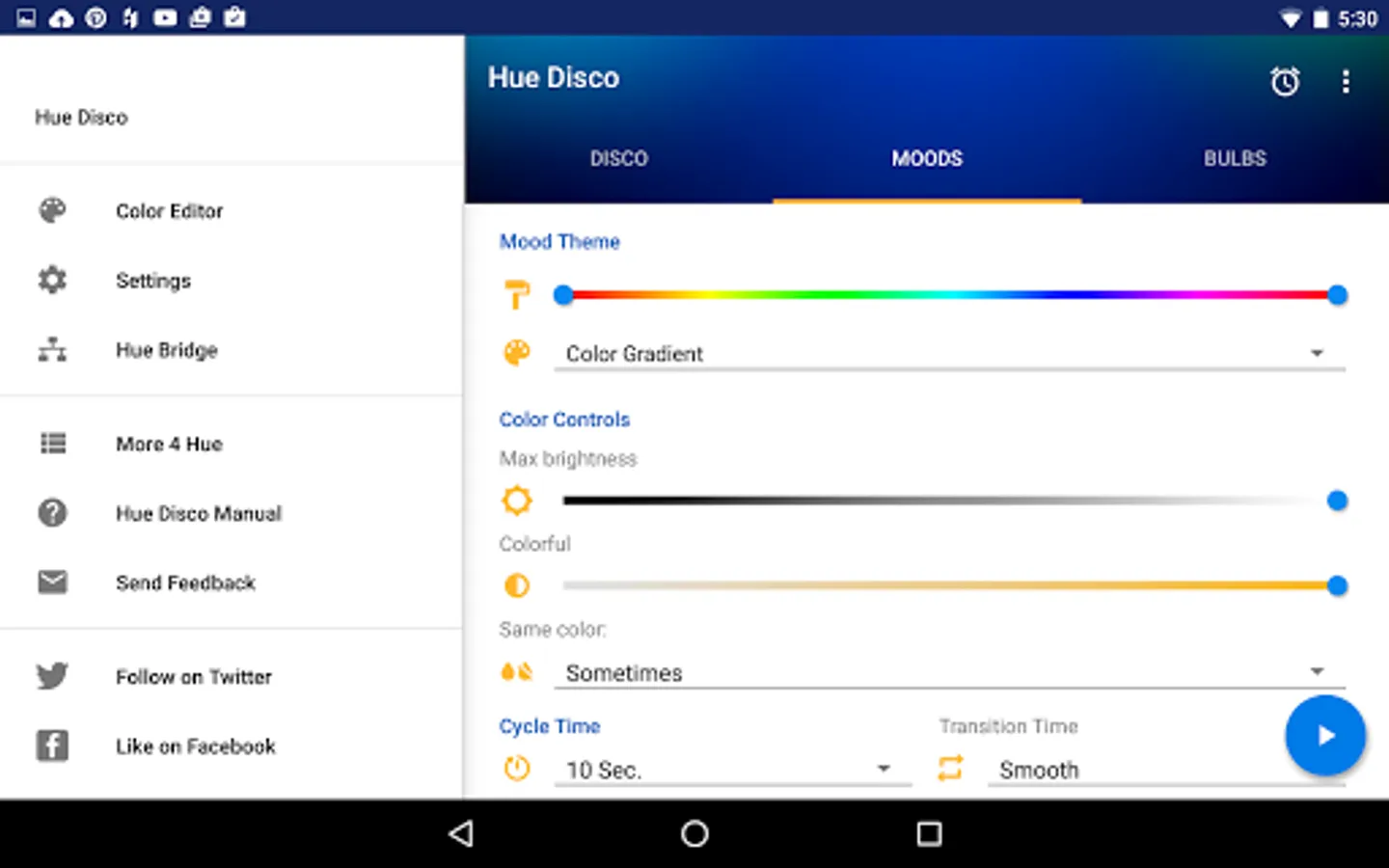 Hue Disco does it all with your Philips Hue setup. The Mood function changes your Hue Lights within