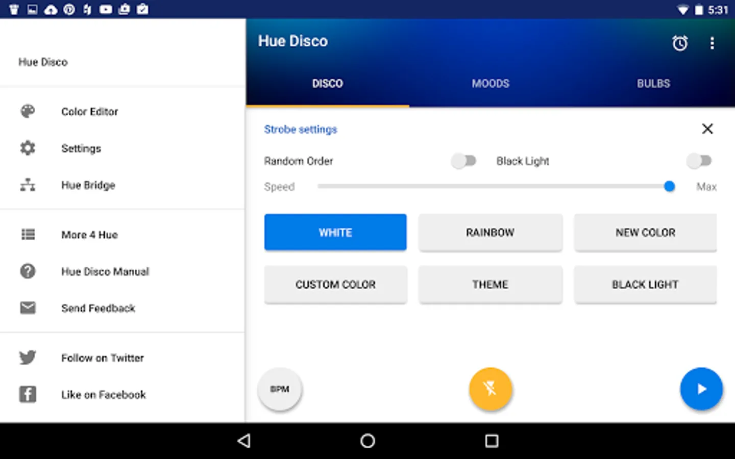 It's the only Hue App with a real fast Stroboscobe! (Strobe)