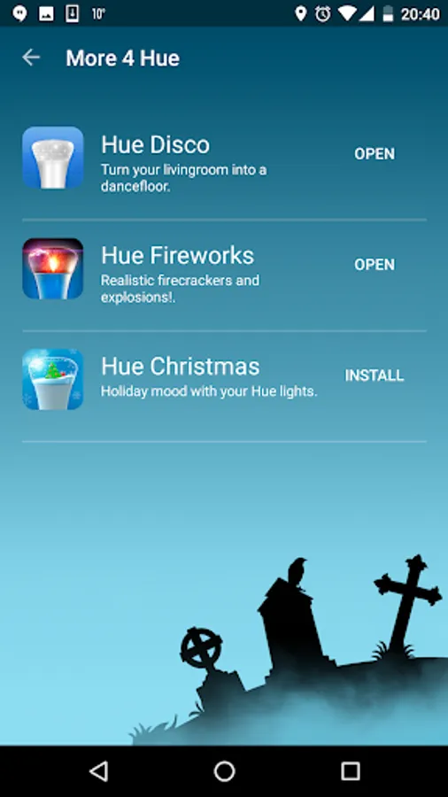 Warning: To use Hue Halloween you must own or have access to a Philips Hue Controller with at least one controlled bulb. Don't buy this App if you do not know what Philips Hue is. See http://www.meethue.com for more information.