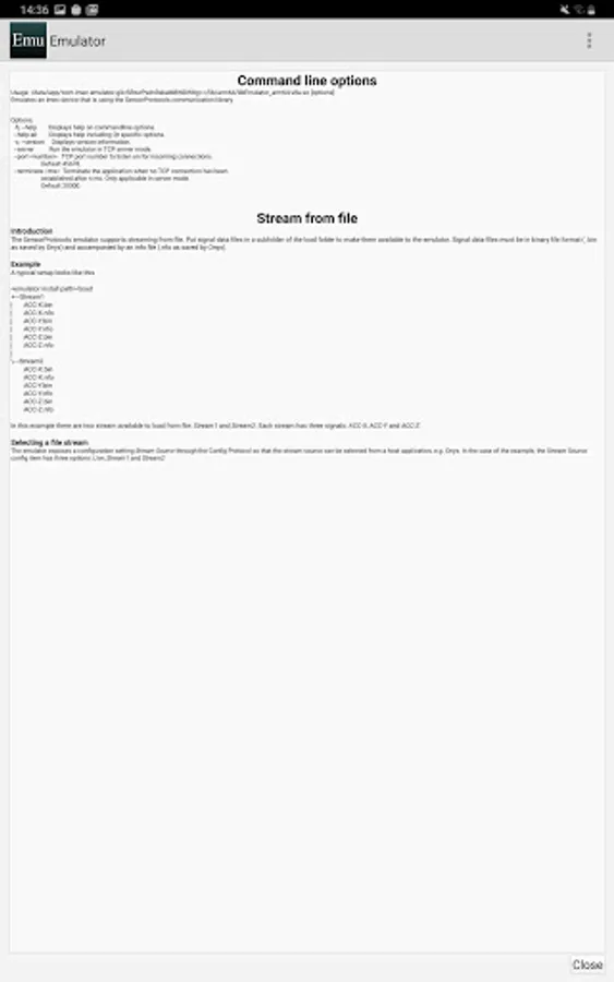 The SensorProtocols Emulator app allows you to emulate a device that runs the imec SensorProtocols communication protocol. This protocol is commonly used by imec wearable devices that measure biophysical signals such as EEG, ECG, PPG and BIOZ. The emulator can be used as a reference device during the implementation of a SensorProtocols host or as a replacement of an actual device during demo's. The emulator can run on a TCP (Wifi), Bluetooth Classic or Bluetooth Low Energy connection. It generates a number of predefined signals, but also has the possibility to use signals loaded from file. It provides basic logging of the messages that are transferred between the host and the emulated device.