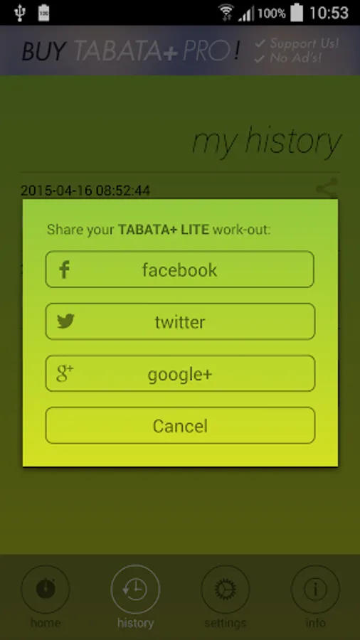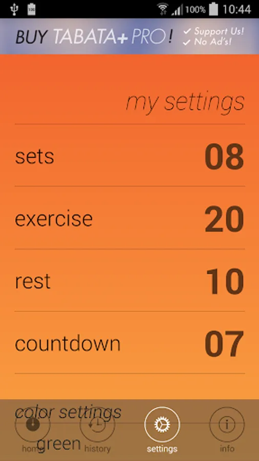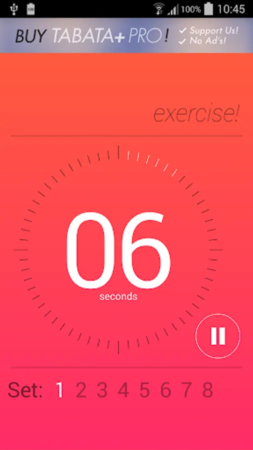 This app is perfect for tabata! No extra crap getting in the way of your workout. Tap it and go! The simple interface let's you focus on digging deep and getting the last set done.