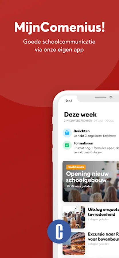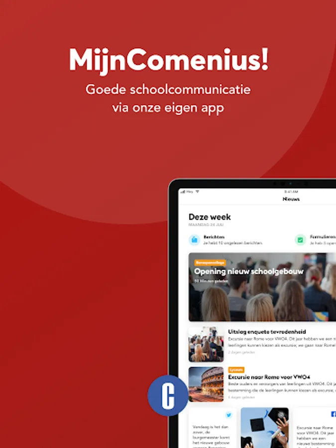 Are you a parent, student or employee of Comenius Lyceum? Then download the MijnComenius app and log in with the account info you've received via e-mail. Didn't receive an invitation, but still want to check the latest news of Comenius Lyceum? That's also possible without login!