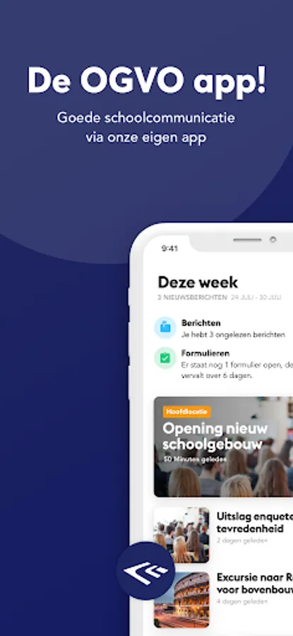 Are you a parent, student or employee of Blariacumcollege, College Den Hulster or Valuascollege? Then download the OGVO app and log in with the account info you've received via e-mail. Didn't receive an invitation, but still want to check the latest news of the OGVO schools? That's also possible without login!