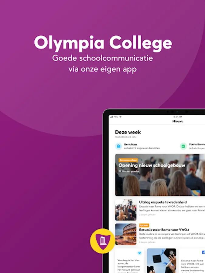 Are you a parent, student or employee of Olympia College? Download the Olympia College app now and log in with the data you have received by email. Didn't receive an invitation, but always got the latest news from Olympia College in your pocket? That is also possible without a login!