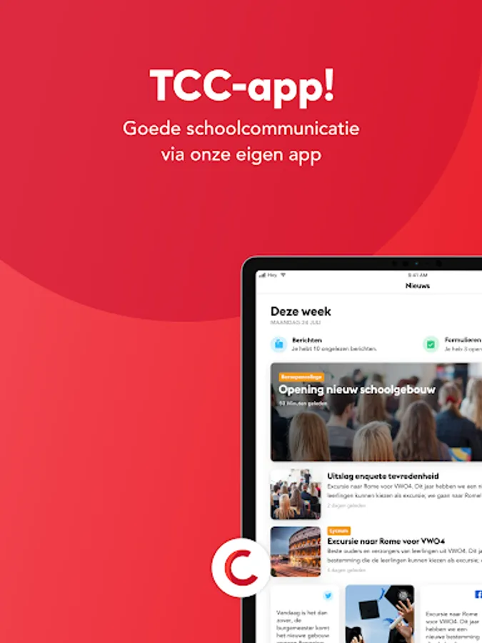 Are you a parent, student or employee of Twents Carmel College? Then download the TCC-app and log in with the account info you've received via e-mail. Didn't receive an invitation, but still want to check the latest news of Twents Carmel College? That's also possible without login!