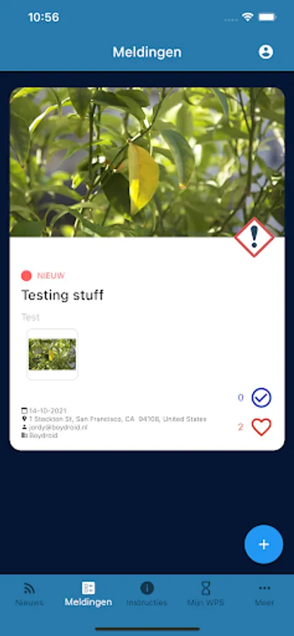 With this app dangerous situations can be reported, compliments can be given about the working method, or accidents can be reported. Descriptions and photos can be added to a report so that they paint a clear picture of the situation.