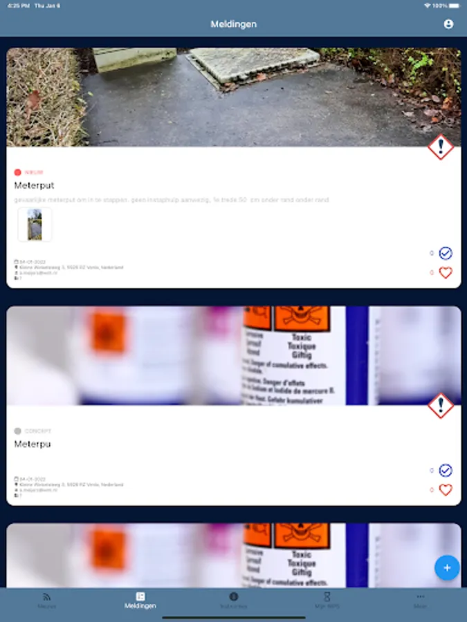WML employees can report dangerous situations or give a compliment for a safe work situation via the KAM Notifications app. The location is automatically filled in via the GPS and photos can be added. The reports can be handled in the backend portal.