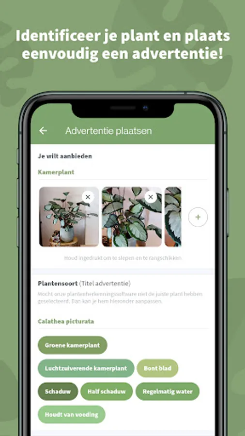 Don't throw your plants away! But make someone else happy by selling them through Plantigo. The plant identifier automatically recognizes your plant and automatically links it to the encyclopedia.