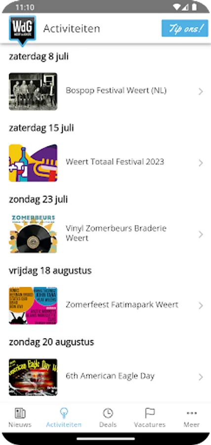 You will also find in the app the events that will be organized in Weert in the coming period. The event calendar was created with the cooperation of the MetOnsInWeert.nl platform.