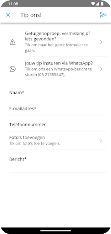 Via the app you can quickly submit a news tip with photos.