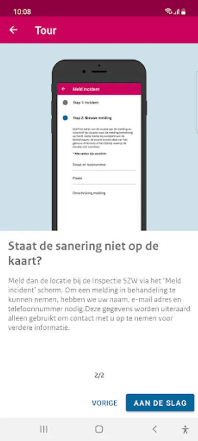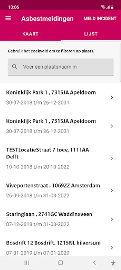 Is the remediation not on the map? Then report the location to the Dutch Labor Inspectorate via the 'Report incident' screen. In order to process a report, we need your name, e-mail address and telephone number. This information will of course only be used to contact you for further information.