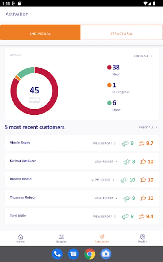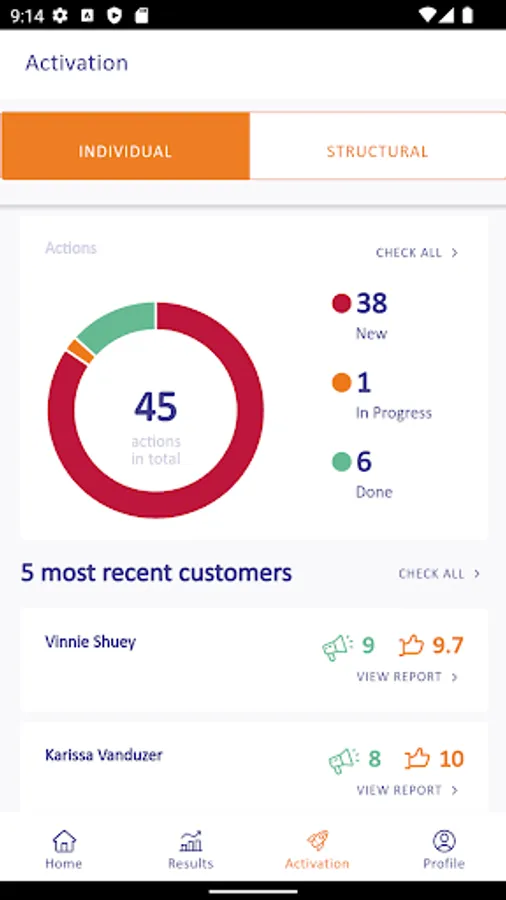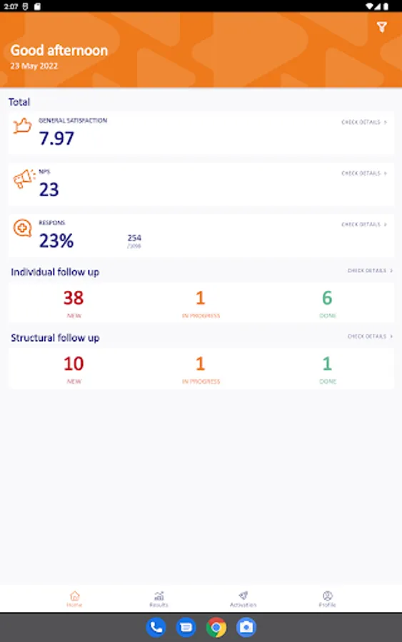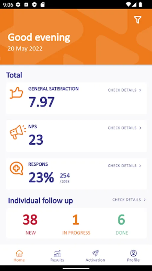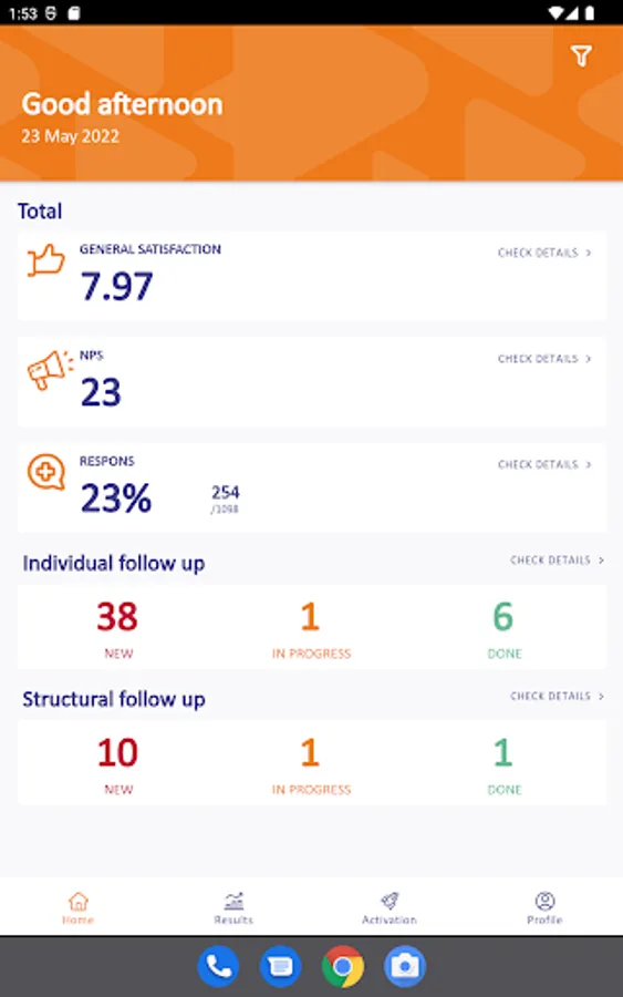 KPI’s such as satisfaction, (e)NPS and response rate can be followed 'on the go' via the Integron Dashboard app. Initiate actions based on the highest priorities with the aid of action management. The Integron Dashboard app is accessible to all users of our online dashboard. The app features: