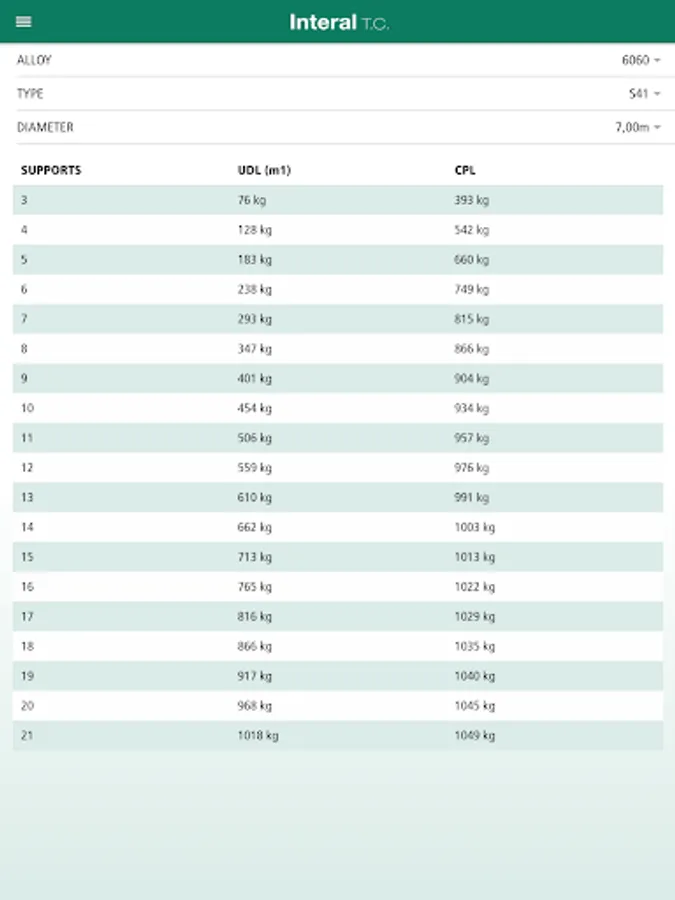 Use the Interal Trusscalculator to get load specifications for your truss configurations.