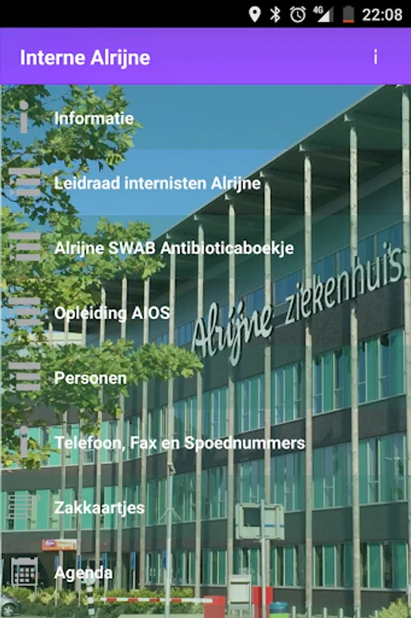Deze app werd samengesteld door de leden van de vakgroep Interne Geneeskunde en de vakgroep Maag-Darm-Leverziekten van Alrijne Ziekenhuis te Leiderdorp. De app Interne Alrijne ondersteunt de gebruiker om informatie over richtlijnen en opleiding snel beschikbaar te hebben. De leidraad vormt een hulpmiddel voor de behandeling van patiënten met interne aandoeningen door artsen binnen ons ziekenhuis en is zoveel mogelijk gebaseerd op nationale richtlijnen van de NIV, CBO, SWAB etc. Soms zijn aanpassingen gemaakt zodat de richtlijn beter toepasbaar is voor de lokale situatie. Hoewel de gegevens in de app met de grootst mogelijke zorg zijn bijeengebracht, nemen de auteurs en de vakgroepen geen enkele verantwoordelijkheid op zich voor eventuele onjuistheden.