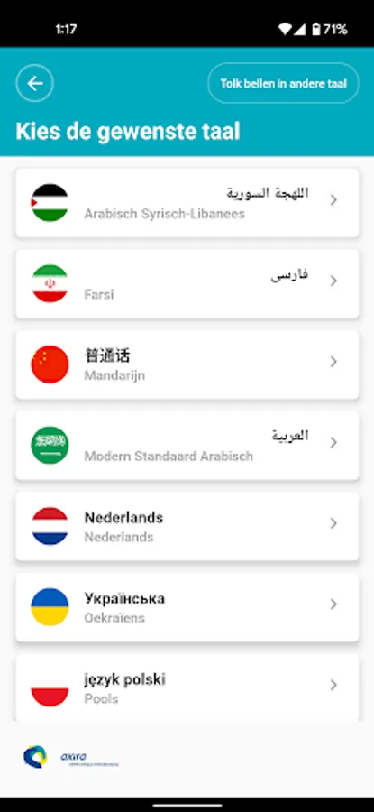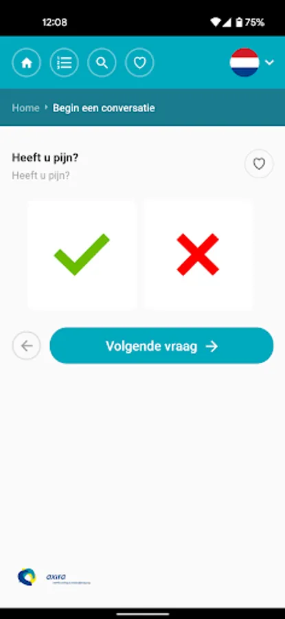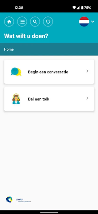 Interpreting the App supports the ambulance personnel joined Axira. In the app an interpreter be called in the appropriate language by pressing the button and can be diagnosed quickly through a few basic questions.