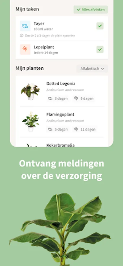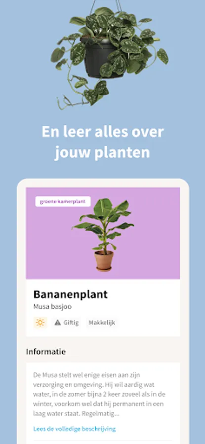 You can also use the app for all your questions about plant care so that your plants always get the attention they need. The app indicates exactly when you need to take action, for example when your plant needs water and when it is time for plant food. So easy!