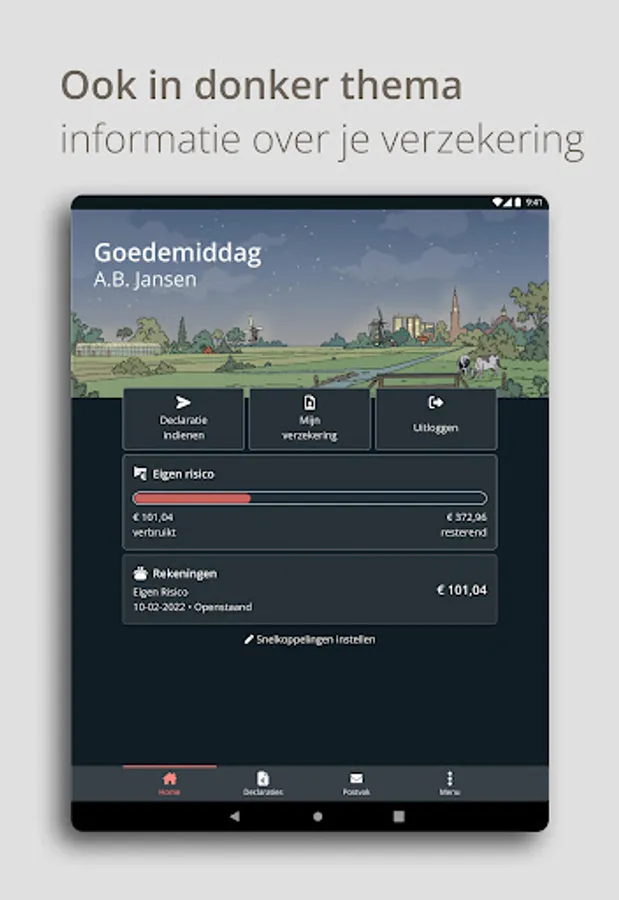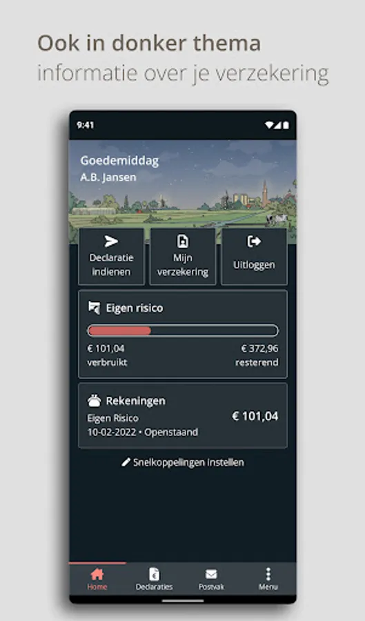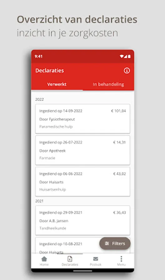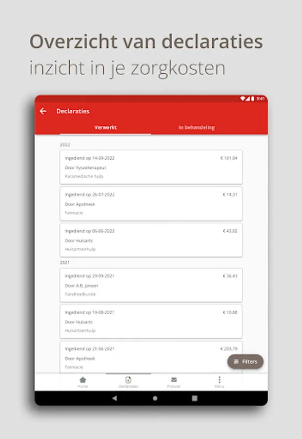 • declare healthcare costs by taking a photo of the bill in the app or by uploading the digital bill