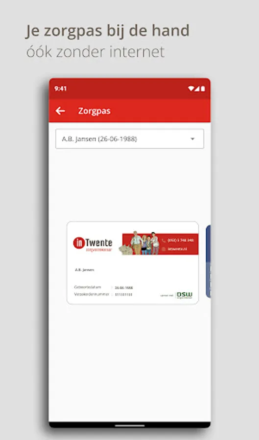 With the My inTwente app you always have your digital health insurance card with you, even without an internet connection!