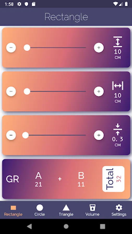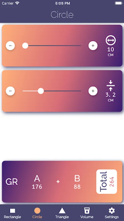 Slider three: Here you state the number in liquid B. The result is how much you need to add of liquid A and the total. For example if you have added too much of liquid B.