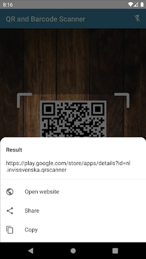 After you've scanned a barcode or QR code, copy or share the contents of the scanned code with a friend or colleague, or even open it in your browser if it is an url.