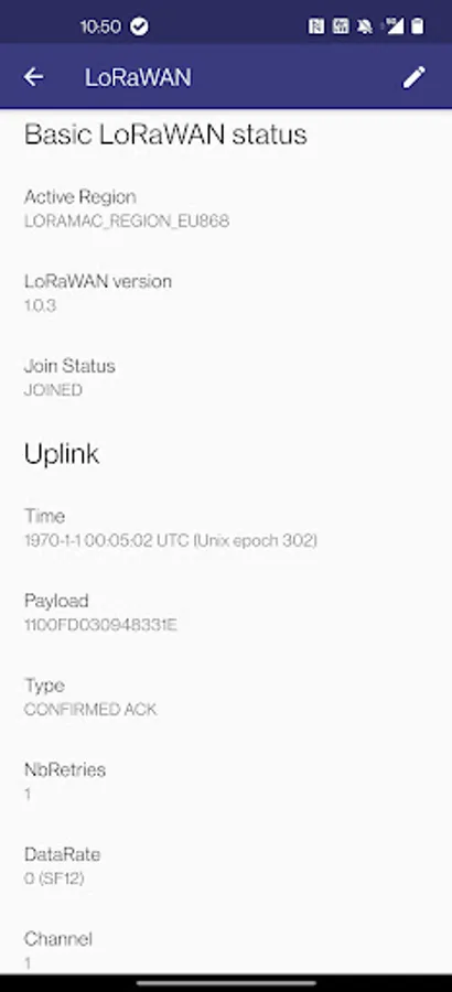 * View the LoRa network status (join status, SF, RSSI, etc)