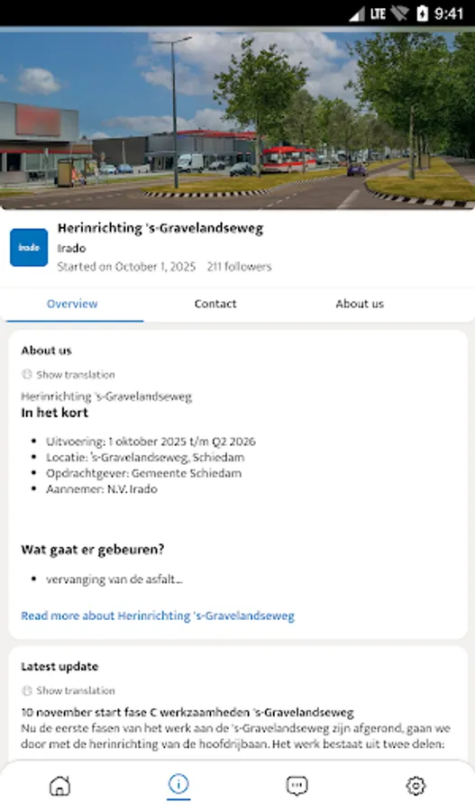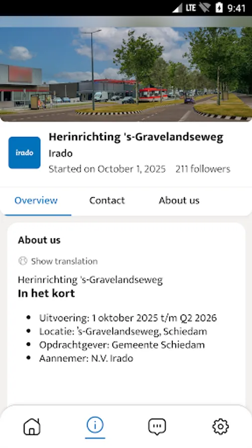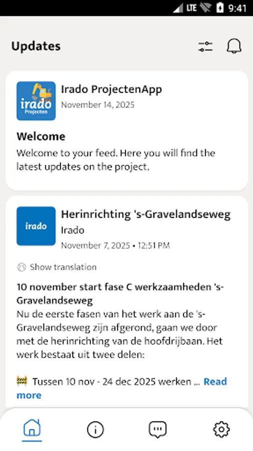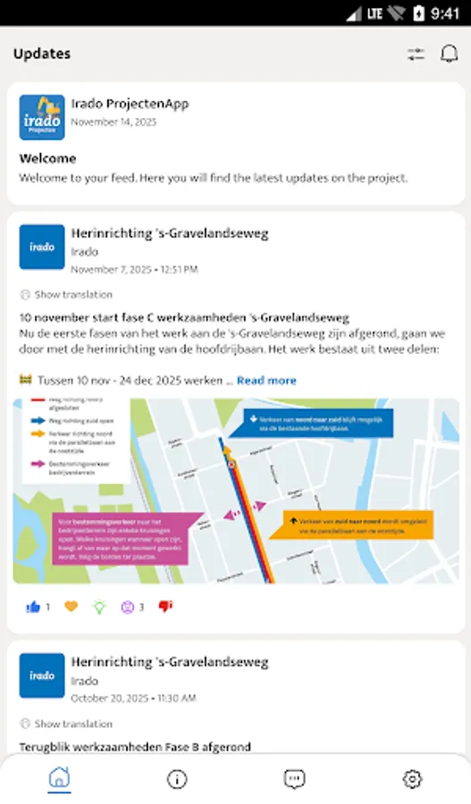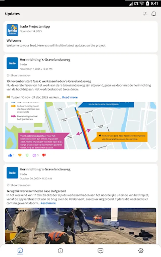 In this app, you can find all the information and follow updates about projects carried out by NV Irado. You can also contact NV Irado through the app.