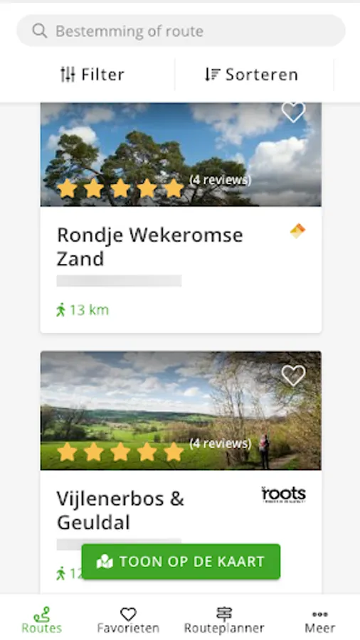· All official Long Distance Hiking Trails and Regional Trails (from Wandelnet & Nivon, but also some routes from KWBN and regional partners). These are multi-day routes.