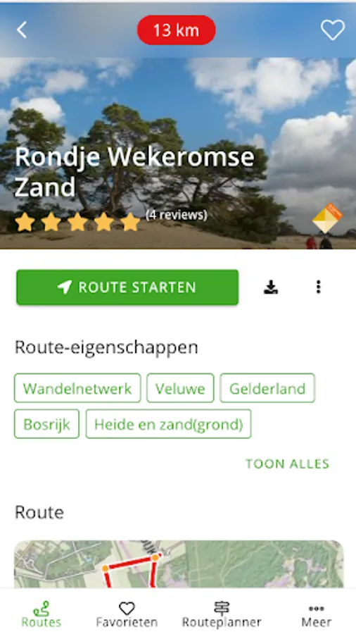You can also plan a route yourself or use the unique code to load a route that is already planned on Wandelnet.nl. You can in the planner: