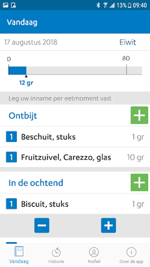 In the Isala Nutrition app you can add products to your food diary per meal moment. The app adds the nutritional values from your diet.