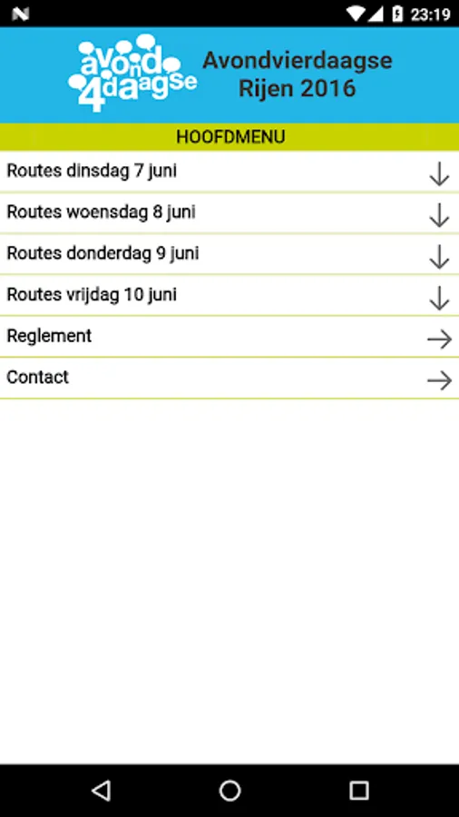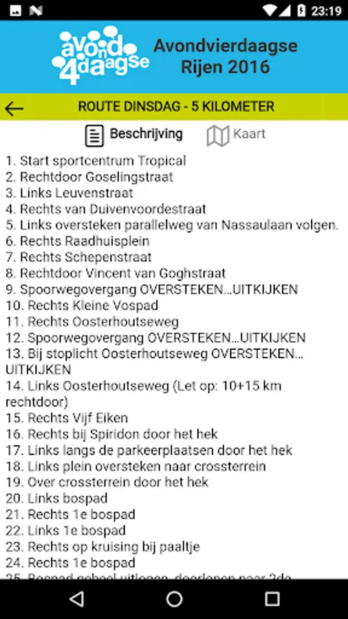 With this app you can see the directions and the Avondvierdaagse Rows cards.