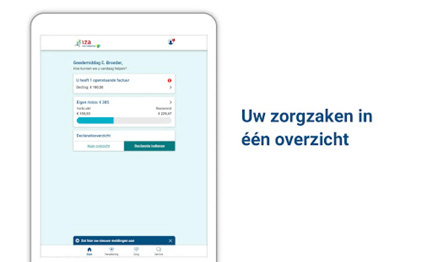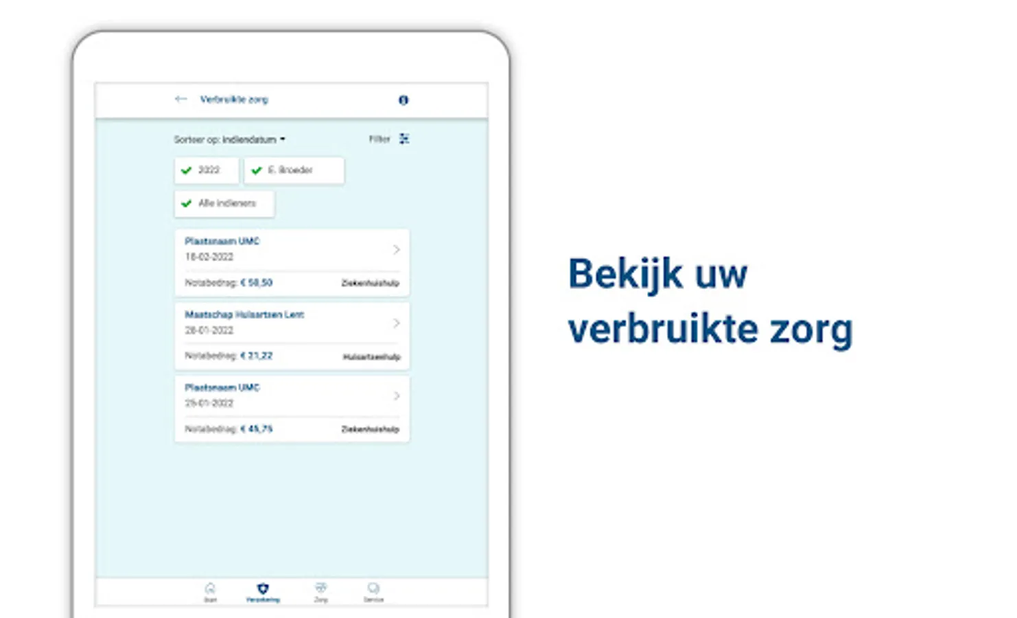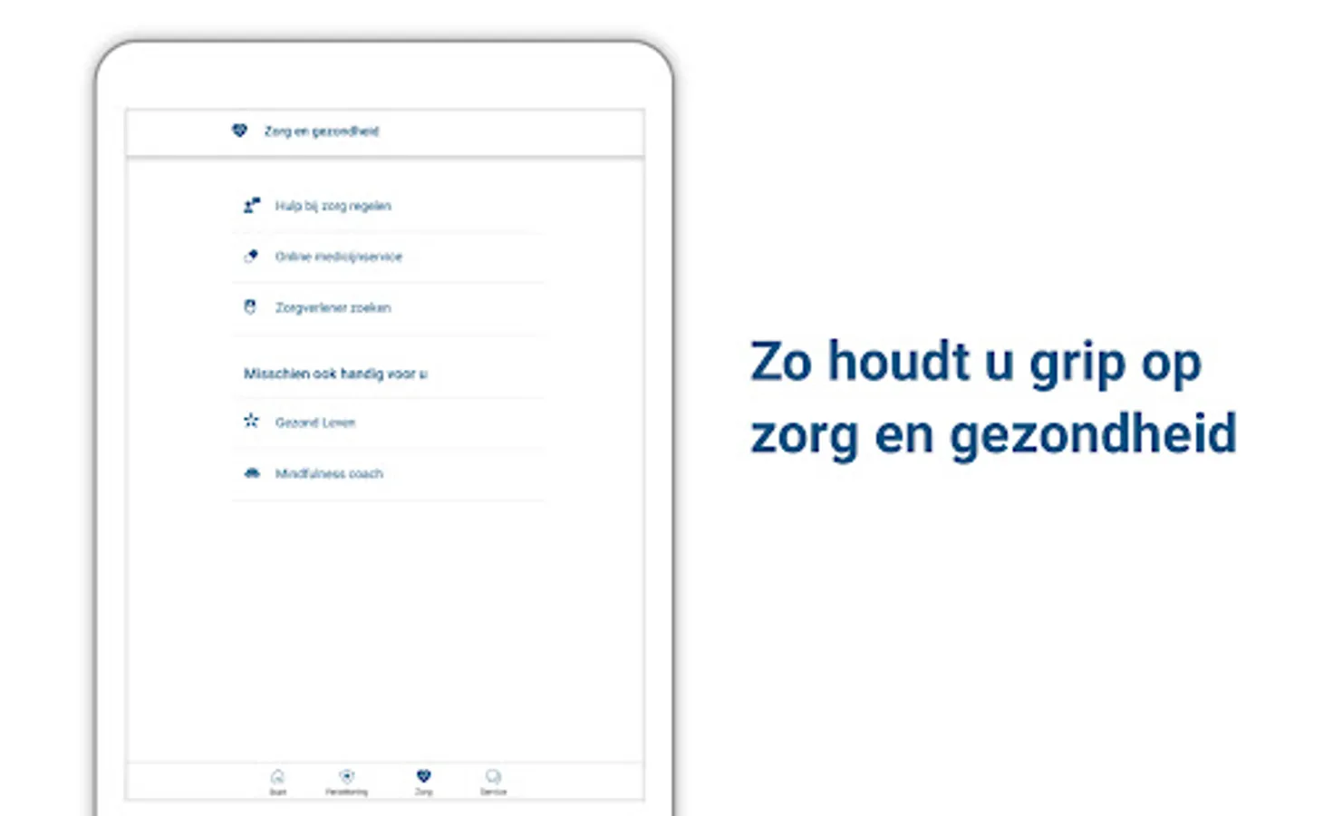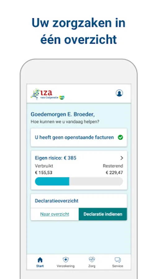 Healthy living is not always easy. That is why we are happy to help you with useful services related to health. And do you still need care? Then you can quickly and easily arrange your healthcare matters via our app. For yourself or for others on your policy.