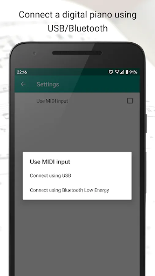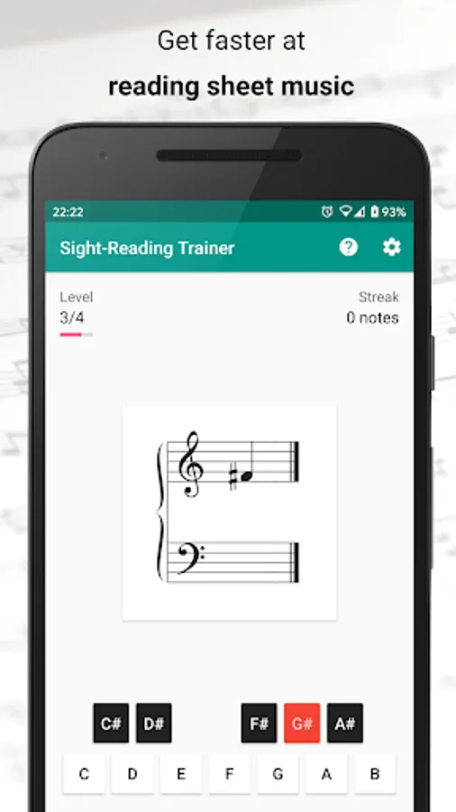 Sight-Reading Trainer helps you improve your sight-reading skills. It's focused on piano sheet music and gradually becomes more difficult while you get better and faster in reading sheet music. You can even use your digital piano to practice by connecting it using MIDI over USB or Bluetooth Low Energy!