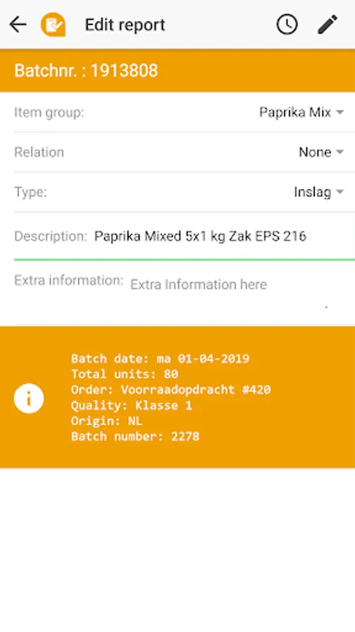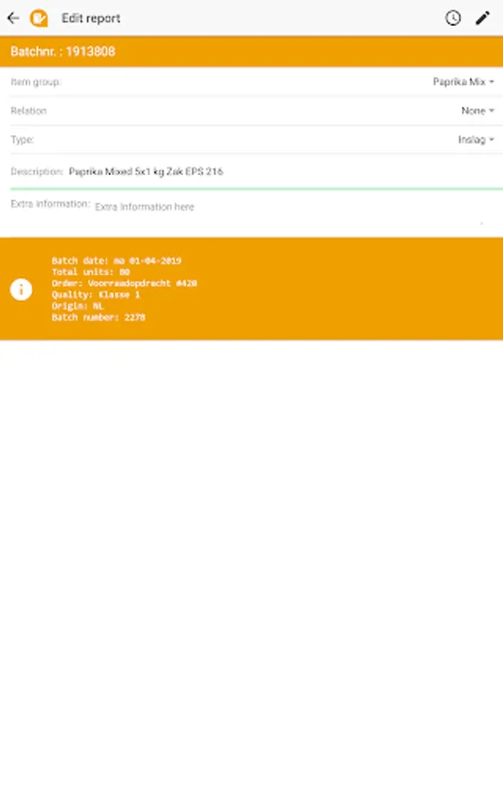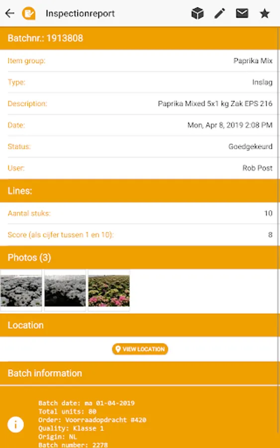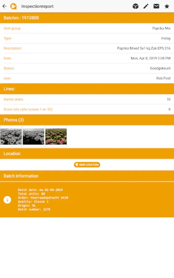 Quality control made easy. FreshTracker enables you to create and track quality reports of fresh products using your own Android Device. You will be able to scan QR codes referring to batches of your products and enter the specifications. By then picking one of your custom made inspection templates, you will be asked to fill out the checkpoints and measurements for the examination. The final step is taking several photos of the product and uploading it to the FreshTracker Portal.