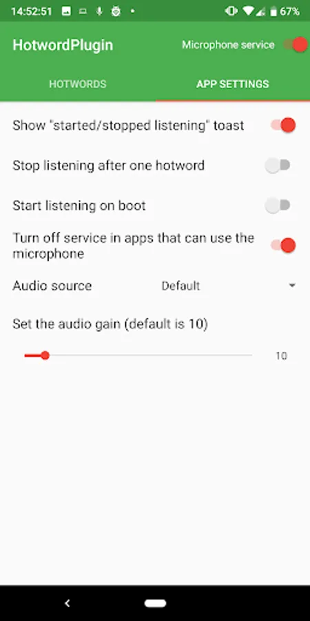 To give you a taste of what's possible I already give you a few hotwords to play with, but since they are not trained to your phone's mic it's much advisable to train and download your own.