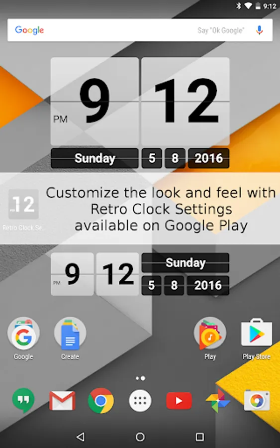 Now customize style and shortcuts with the Retro Clock Settings app, for sale on Google Play!