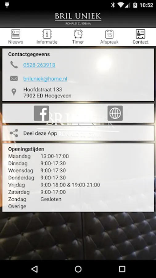 The App Glasses Unique you are always aware of the latest news from the shop. You also have all the information about the store, such as hours of operation, address information, telephone number and current collections.
