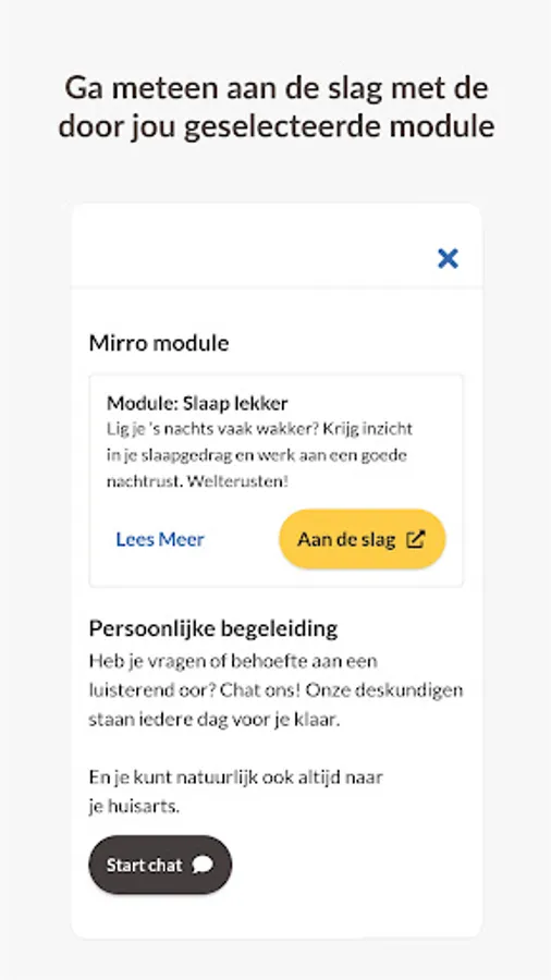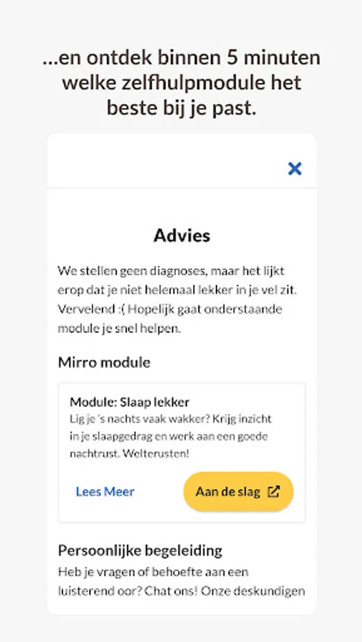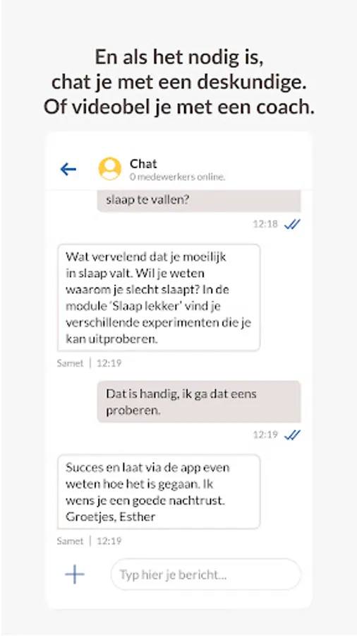 Not feeling well? With App de Coach you can get started with your mental health today. Even in the evenings and on weekends. Take the self-test, start a self-help module or chat with an expert for advice. And if necessary, you can video call with a recognized coach.