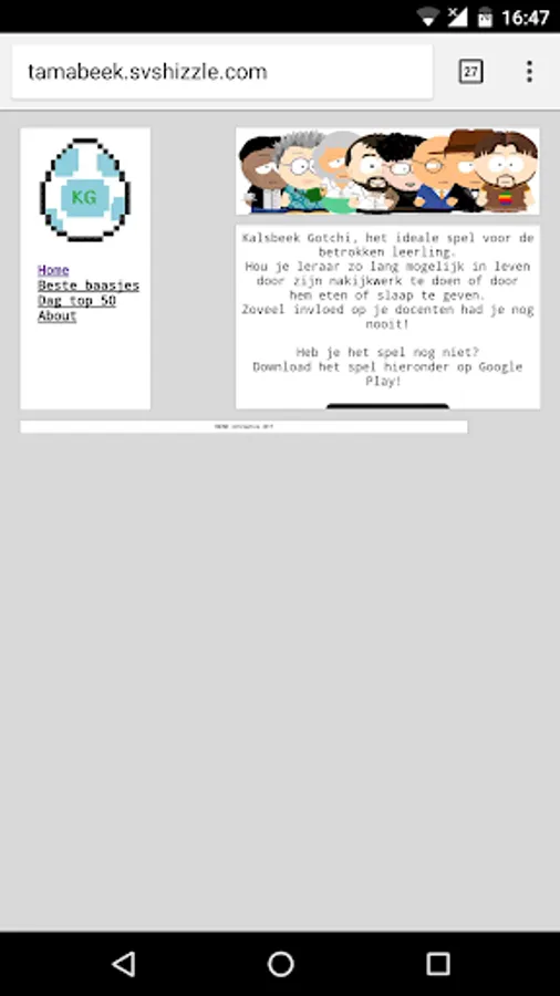 A revolutionary new game! The Kalsbeek computing section takes you: Kalsbeek Gotchi. In this game you will be assigned a personal tutor where you should ensure through three needs. The game includes the famous teachers: Sebkhi, Backx, Baker, Venema and Computer Science teacher, Mr. van Elsen, should also not be missed!