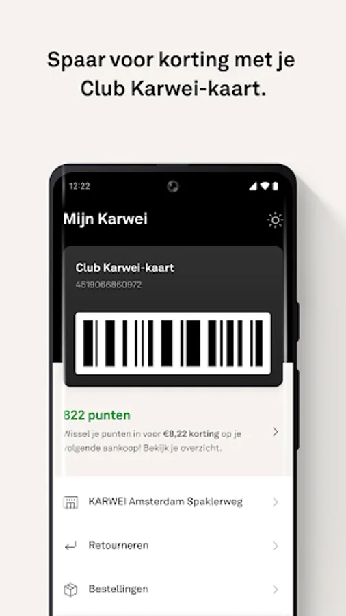 Become a member of Club Karwei. This gives you access to extra discounts and saves you points. Use your Club Karwei barcode in the app or link your physical Club Karwei customer card to the app and keep track of all your points.