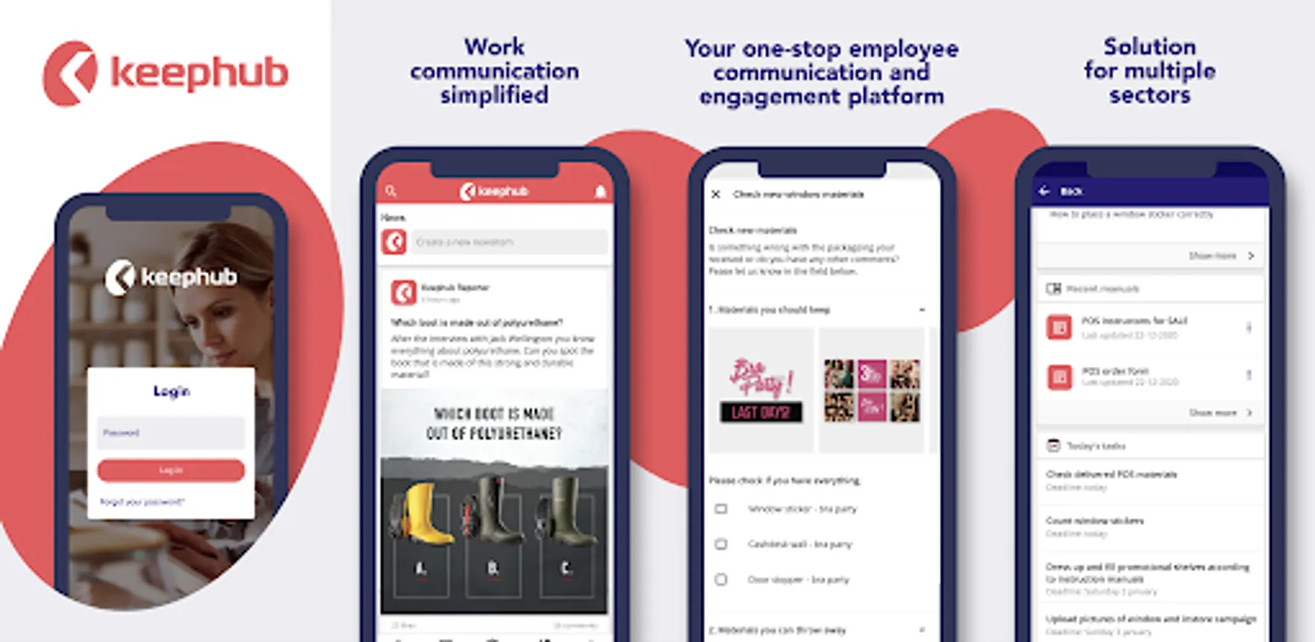 Keephub combines ‘Need to know’, ‘Need to do’ and ‘Nice to know’ into an overall, integrated employee approach. Based on mobile-first development, the platform can be used on any device and is fully customisable to match your brand image, in terms of name and identity.