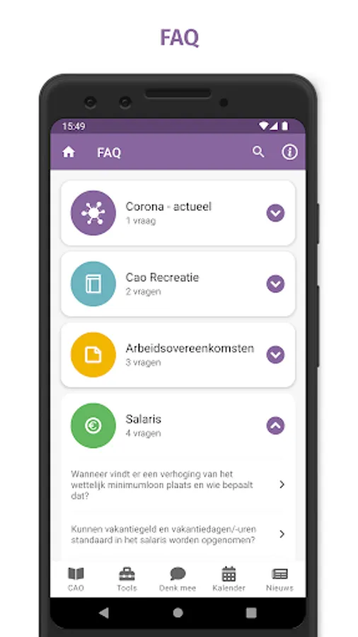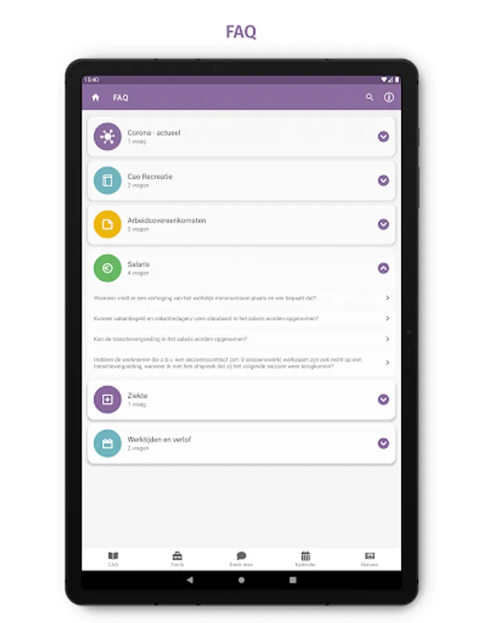 In addition to the collective labor agreement texts, the app also contains useful tools and news on collective labor agreement topics. You can also contribute ideas about your employment conditions.
