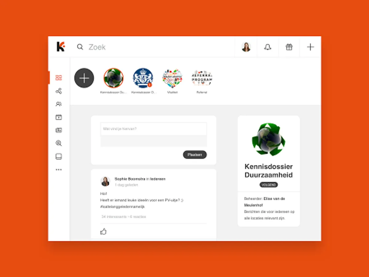 Kinpoint is the community platform of Kinran Environment Experts, for everyone who works at or for Kinran. Kinran values effective and open communication, intensive knowledge sharing and optimal coordination. Kinpoint facilitates this with, among other things, interactive circles, a news section and a database with documents and notifications. In this way, the entire organization remains connected with each other both professionally and informally, wherever everyone is. Whether it concerns the latest news, current knowledge and insights, calls, vacancies, calendar items, polls or announcements, it can be found at Kinpoint. This increases the quality of work and contributes significantly to employee satisfaction. Kinpoint is "powered by Teamly", a solution from Nedbase digital agency.