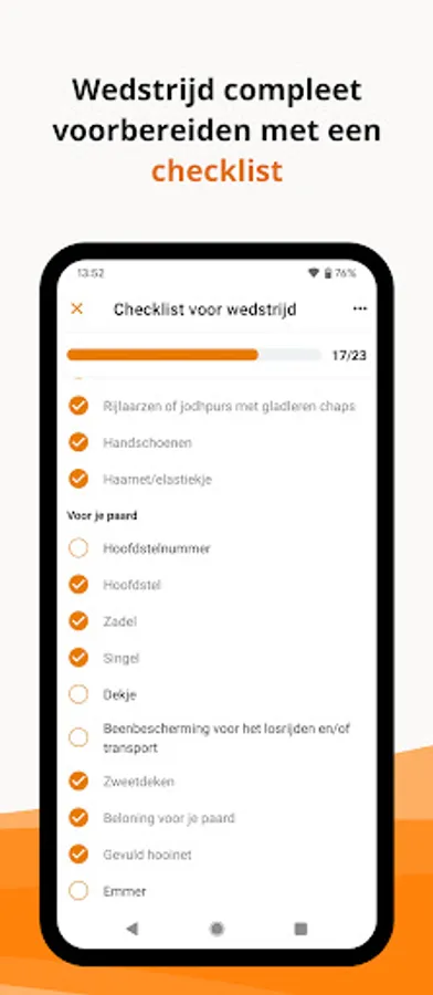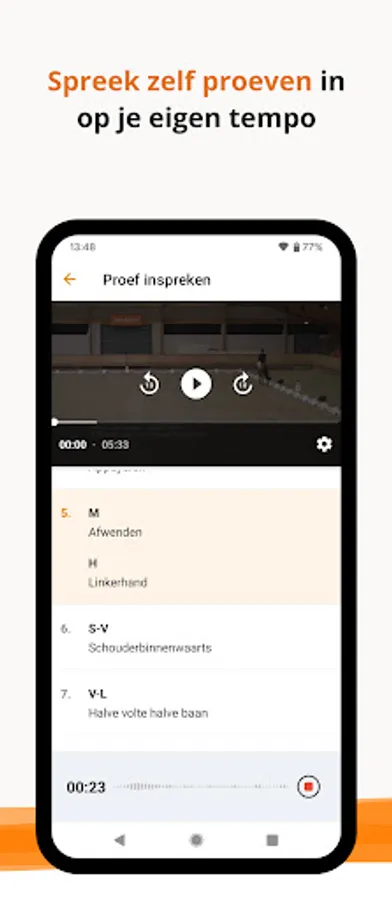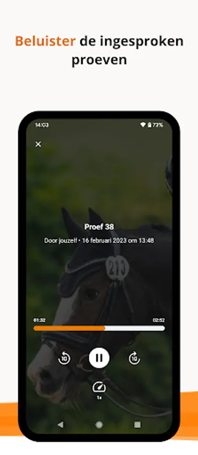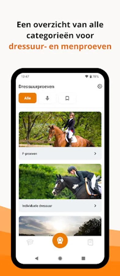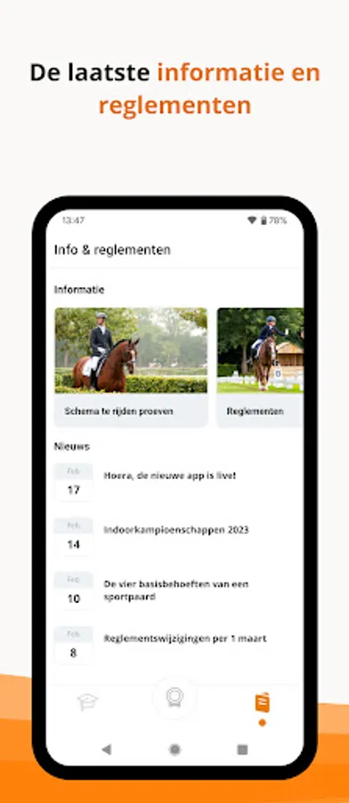 New in this app is the reading mode, which allows you to read your tests (or have them read out) in a clear way. You will also find various tools to help you prepare, such as a checklist. Pre-recorded audio is available for a number of tests so that you can start practicing immediately. We will also keep you informed of the latest important news about dressage tests via the news functionality.